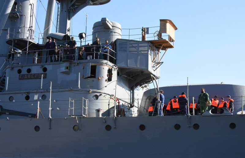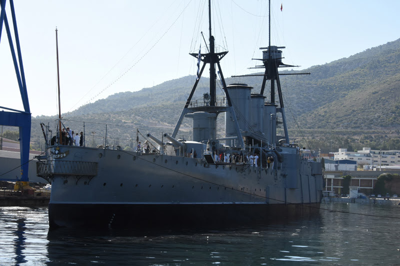 Τα πλοία στο λιμάνι του Πειραιά έκαναν «κράτει» να περάσει το ένδοξο θωρηκτό και το χαιρετούσαν με τις σφυρίχτρες τους, ενώ στα ναυπηγεία του Περάματος οι εργαζόμενοι σταμάτησαν για λίγο τις δουλειές τους για να δουν το ταξίδι του θωρηκτού.