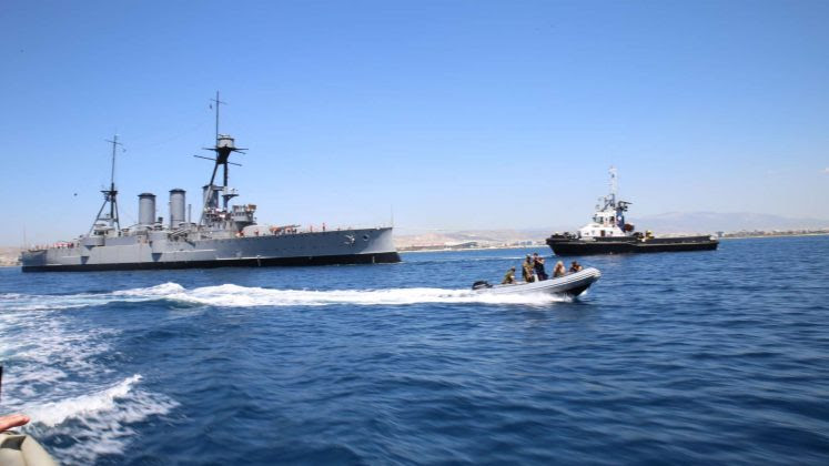 Η ρυμούλκηση του από τα ναυπηγεία Σκαραμαγκά μέχρι την θέση μεθορμίσεως του ήταν μια συγκινητική θαλασσινή γιορτή. Η ηγεσία των Ενόπλων Δυνάμεων απένειμε τιμές, ενώ δεκάδες μικρά και μεγάλα ιδιωτικά σκάφη περίμεναν το πλοίο-σύμβολο του Πολεμικού Ναυτικού στην έξοδο από τον δίαυλο της Σαλαμίνας και το συνόδεψαν τιμητικά μέχρι το Φάληρο.