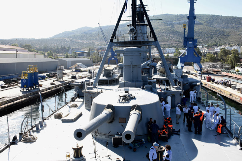 Αν και αρχικά υπολογιζόταν ότι το θωρηκτό θα έμενε στα ναυπηγεία Σκαραμαγκά μέχρι τέλη Ιουνίου εν τούτοις η παραμονή του πήρε κάποιες ημέρες παράταση και αυτό γιατί οι κληρονόμοι του Αλέξανδρου Γουλανδρή θα χρηματοδοτήσουν την πλήρη ανακατασκευή του καταστρώματος.
