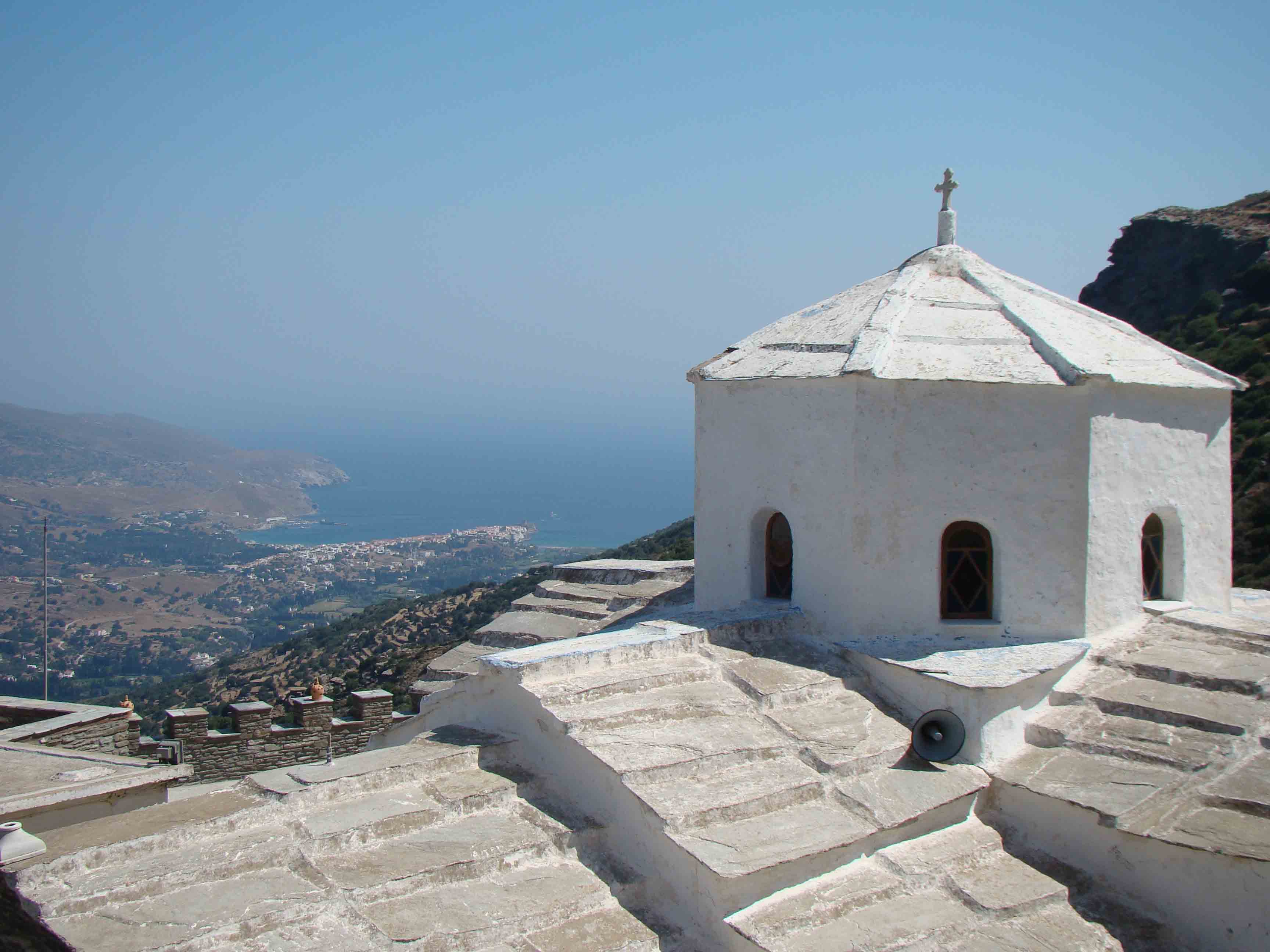 Από ύψος 500μ. η Μονή ατενίζει την Χώρα και το Αιγαίο