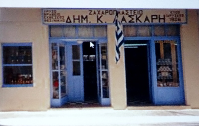 Από τις διαφάνειες: το ζαχαροπλαστείο Δ. Κ. Λάσκαρη, παππού του Δημήτρη Λάσκαρη (φωτ. Εν Άνδρω).