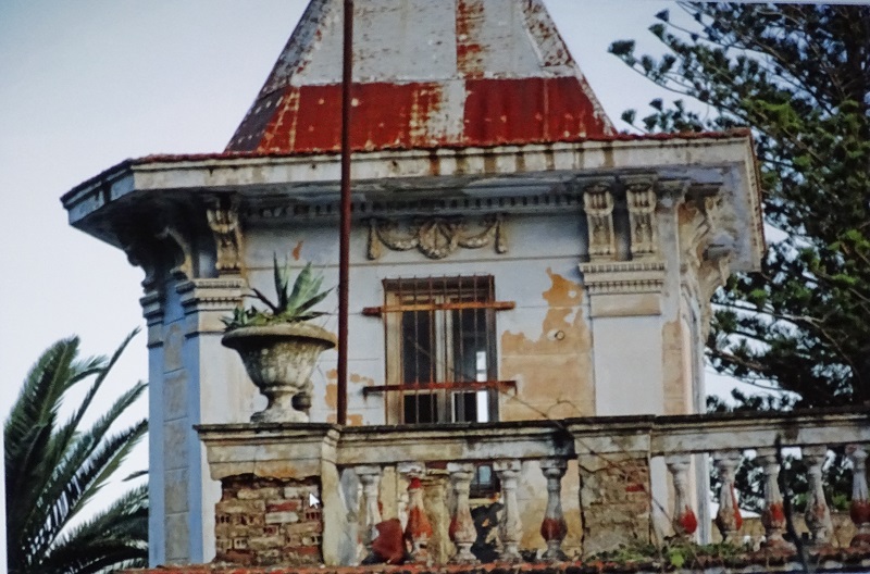 Όποιος τον πρωτοαντικρίζει, έτσι όπως ξεπροβάλλει αιφνίδια στη στροφή του λιθόστρωτου δρόμου, κοντοστέκεται και τον χαζεύει. Ο κήπος είναι σαν μια μικρή ζούγκλα που ξεχειλίζει πάνω απ'ο τον μαντρότοιχο και μέσα από τις περίτεχνες σιδεριές της καγκελόπορτας. Πίσω απ'τον τεράστιο κάκτο, ανάμεσα στο φοίνικα και στην αρχοντική αροκάρια, ξεπροβάλλουν υψίκορμα παράθυρα με περίτεχνα διακοσμητικά στολίδια, μια μεγάλη τζαμαρία με μονόγραμμα και τοξωτή στέψη, αρχοντικές γλάστρες με αθάνατους κι ένας απόκοσμος πυραμιδοειδής πυργίσκος... Σίγουρα αυτός ο πύργος θα βρισκόταν εντελώς στο στοιχείο του στη Γαλλική Ριβιέρα ή στο Καρτιέ Γκρέκ της Αλεξάνδρειας των αρχών του 20ου αιώνα.