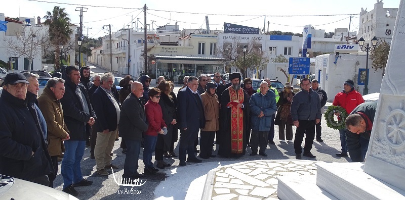 Άλλη μια φωτογραφία με αυτούς που στάθηκαν τιμητικά στο μνημείο και μετά μπροστά στη θάλασσα που χάθηκαν. Είναι η πέμπτη φορά που "ταξιδεύουμε" τις μνήμες της Άνδρου μέσα από τις σελίδες μας στον κόσμο. Κάθε φορά κάνουμε είτε ένα διαφορετικό αφιέρωμα είτε μια διαφορετική αναφορά. Πέρσι στο μνημόσυνο της Ραφήνας, που κι αυτή έστρεψε στις αναφορές της και σκάλισε τις μνήμες της. Όπως κι εφέτος. Εφέτος η δική μας αναφορά - ακόμα μια φορά πρωτότυπη - επικεντρώθηκε στο Γαύριο, στην τελετή μνήμης του και στους δύο επιβιώσαντες του ναυαγίου, που τίμησαν την μνήμη των χαμένων ναυτικών/συνταξιδιωτών τους...