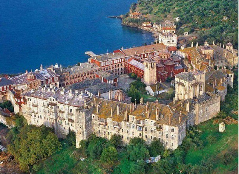 Τα χαλιά της Μονής, που καλύπτουν όλους τους διαδρόμους και τις αίθουσες, είχαν ετοιμαστεί  για την αναβληθείσα άφιξη του Κωνσταντίνου το 1912, με  ΙΜΒ, Δικέφαλο και κορώνα. Στον κήπο της Μονής υπάρχουν Παγώνια. Το μεσημέρι φάγαμε στις 12,00’ μαζί με τους μοναχούς. Το φαγητό ήταν μαγειρίτσα, παστίτσιο, φρικασέ, αυγό. Αμήν!!