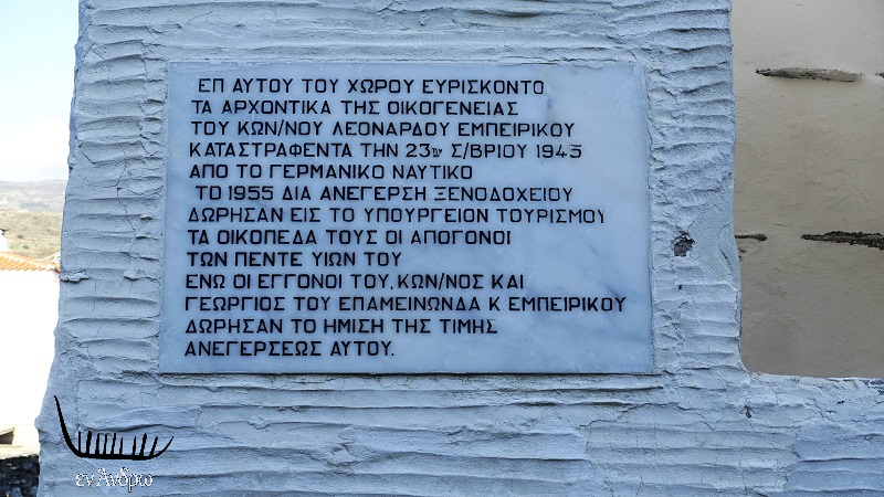 Η περιοχή όμως έχει και άλλες ιστορικές πτυχές και πλευρές. Ο μικρός περιστερώνας δίπλα στο κάποτε εμβληματικό Ξενία (σήμερα ένα κουφάρι μιας αλλοτινής δόξας) φέρει την μνήμη της άλλης μεγάλης οικογένειας ευεργετών της Άνδρου. Της οικογένειας των Εμπειρίκων. Η δωρεά του χώρου για το Ξενία και η συμβολή στην ανέγερση αυτού που αποτέλεσε το πρώτο Ξενία στην Ελλάδα του διάσημου αρχιτέκτονα Άρη Κωνσταντινίδη.