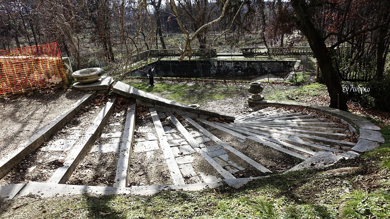 Η μαρμάρινη επιβλητική σκάλα που κατέβαινε στον χώρο της πισίνας.