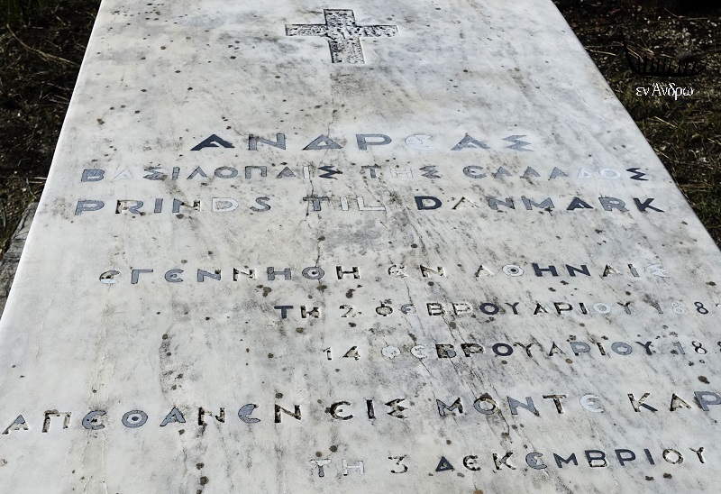 Ο τάφος του πρίγκηπα Ανδρέα. Καταδικάστηκε σε θάνατο για την Μικρασιατική καταστροφή. Έφυγε από την Ελλάδα με βρετανικό πλοίο. Γιός του υπήρξε ο Φίλιππος του Εδιμβούργου, σύζυγος της βασίλισσας Ελισάβετ της Αγγλίας, που πέθανε πρόσφατα.