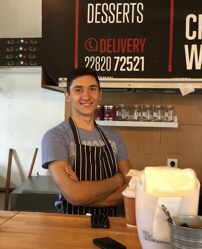 Ο Ανδρέας στην πιτσαρία στον Κάτω Άγιο Πέτρο στην Άνδρο