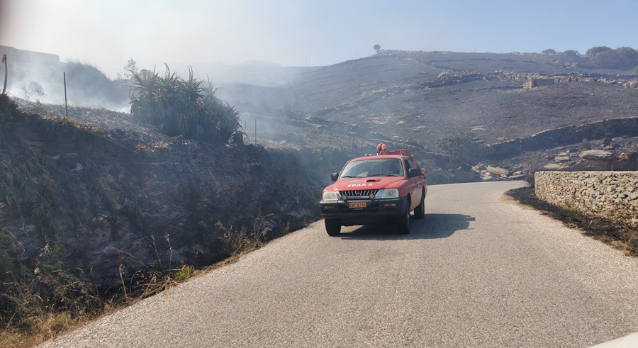 Ακόμα ήρθαν ενισχύσεις από όλη την Άνδρο. Εδώ όχημα από το Κόρθι με τον πατέρα Ιάκωβο επικεφαλής! Ακόμα έρχονται 5 οχήματα από Αθήνα. Τα στέλνει ο ΓΓ Πολιτικής Προστασίας Β. Παπαγεωργίου που μερίμνησε και έστειλε και τα 5 ελικόπτερα, που κυριολεκτικά έσωσαν την Άνδρο. Η φωτιά όπως φαίνεται είναι αυτή τη στιγμή υπό έλεγχο. Έχει κάψει εκατοντάδες στρέμματα, αλλά δεν έχει γίνει αποτίμηση ακόμα. Τα ελικόπτερα ακόμα συνεχίζουν ρίψεις σε όποια σημεία υπάρχουν εστίες η αναζωπυρώσεις. Θα μείνουν εδώ όλες οι δυνάμεις που έρχονται για να ελέγξουν την κατάσταση.