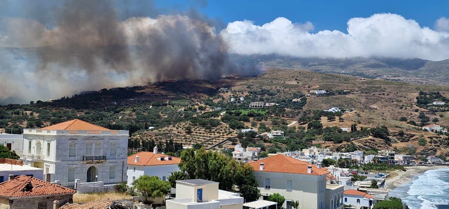 ΑΝΔΡΟΣ: ΜΕΓΑΛΗ ΦΩΤΙΑ ΣΗΜΕΡΑ ΣΤΟ ΚΑΤΑΠΡΑΣΙΝΟ ΥΨΗΛΟΥ - ΚΙΝΔΥΝΕΨΑΝ ΣΠΙΤΙΑ - ΕΠΙΧΕΙΡΗΣΑΝ 5 ΕΛΙΚΟΠΤΕΡΑ