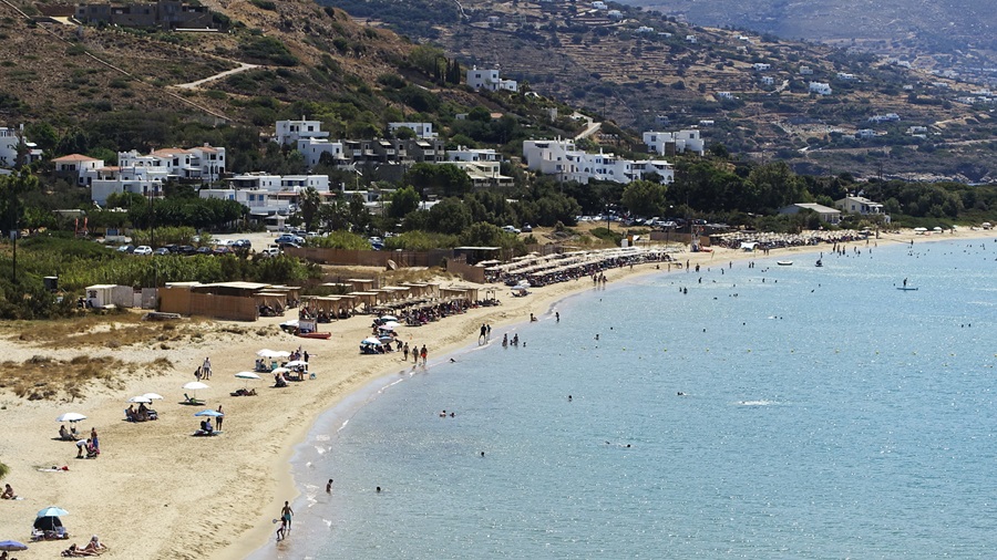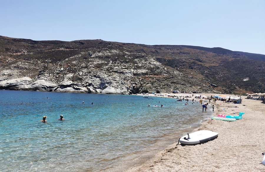 Δεύτερη αναφορά, Κάτω Άγιος Πέτρος. Τα τρία μπαρ της παραλίας γεμάτα. Αλλά και εκτός αυτών κόσμος με τις δικές του ομπρέλες και εκτός αυτών. Η Άνδρος στις παραλίες αναστενάζει...