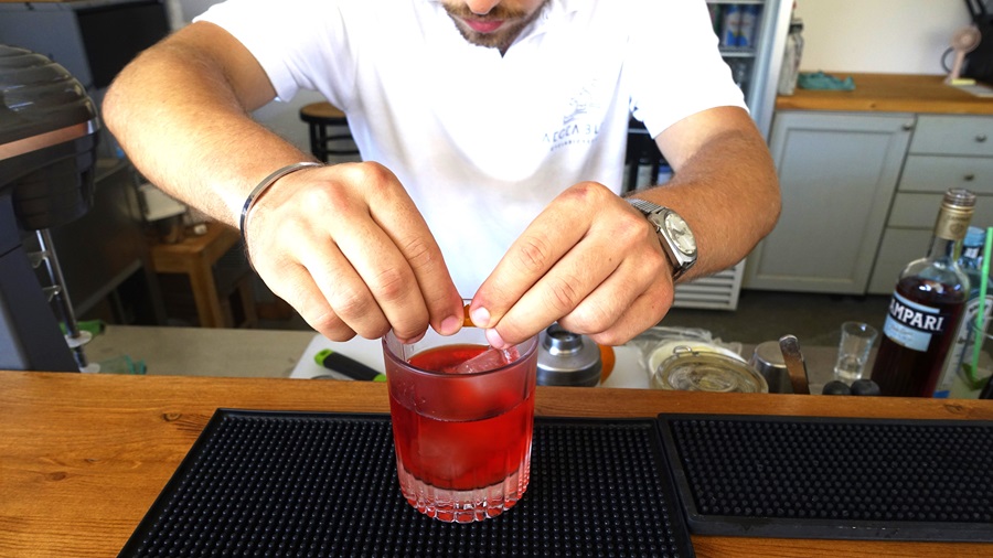 Στο AEGEA BLUE μετά με τον Ακύλα. Και στο τέλος ένα υπέροχο κοκτέιλ Νεργκρόνι στο εστιατόριο-μπαρ του ξενοδοχείου. Ένα απάνεμο απομεσήμερο σε μια γωνιά της Άνδρου που θυμίζει παράδεισο...