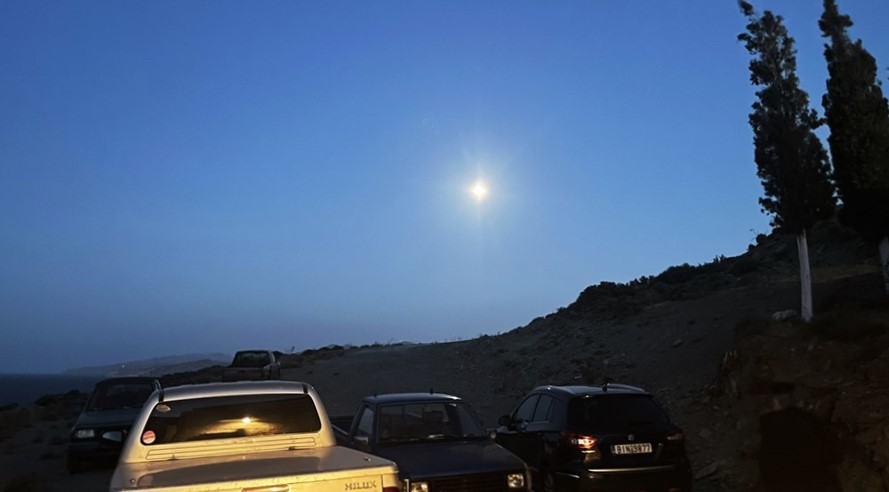 Κι αργά το βράδυ την ώρα της σελήνης - μια μέρα πριν την πανσέληνο τ' Αυγούστου- έφυγαν οι πρώτοι, γιατί οι υπόλοιποι έμειναν μέχρι αργά.