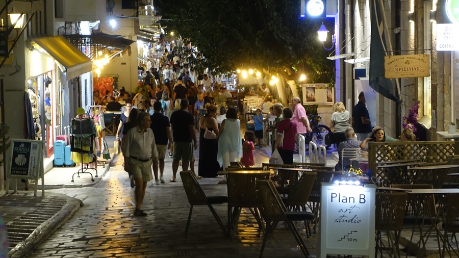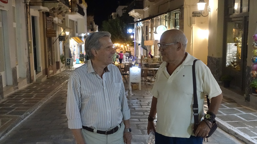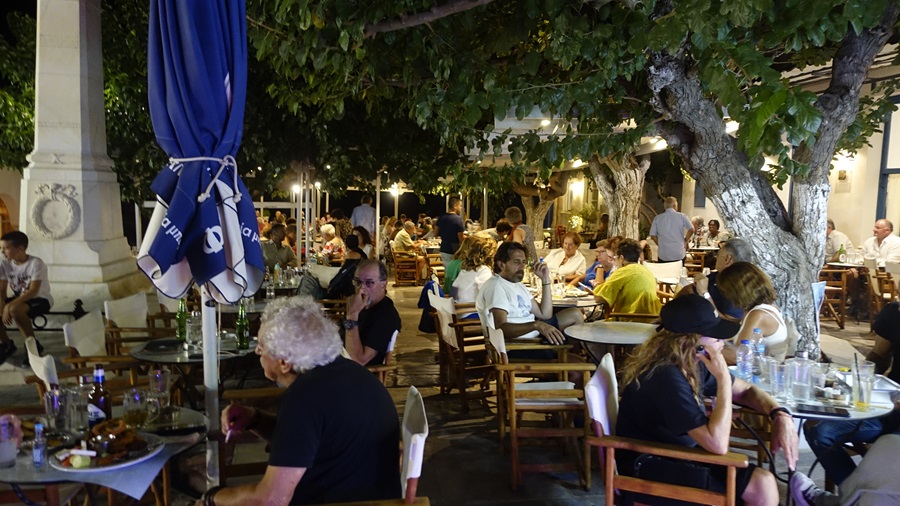 Αλλά ας πάρουμε τα πράγματα με την σειρά. Πλήθος κόσμου κατέκλυζε την αγορά περί τις 9 το βράδυ που βγήκαμε βόλτα στη Χώρα. Κυρίως νέοι οι κατερχόμενοι. Κάτι που έχει σημασία για την μάλλον γερασμένη Χώρα. Υπήρχαν και μεγαλύτεροι όμως οι νέοι έδιναν τον παλμό...