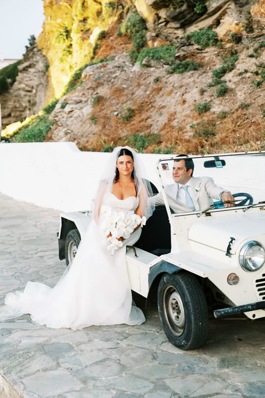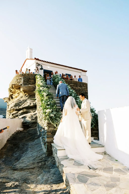 Ο γάμος έγινε αρχικά στις 9 Αυγούστου στην Άνδρο, το νησί καταγωγής των Εμπειρίκων, εκεί όπου ο Γιώργος έχει περάσει τα περισσότερα καλοκαίρια των παιδικών του χρόνων στο οικογενειακό αριστοκρατικό νεοκλασικό. «Οι πιο όμορφες παιδικές μου αναμνήσεις γράφτηκαν στην Ανδρο. Τόσο ο παππούς όσο και η γιαγιά μου λάτρευαν το νησί, στο οποίο έχουν αφήσει πλούσιες ιστορίες και αμέτρητες συνεισφορές μέσω των οικογενειών τους – Εμπειρίκων και Γουλανδρήδων», μας εξηγεί ο ίδιος.