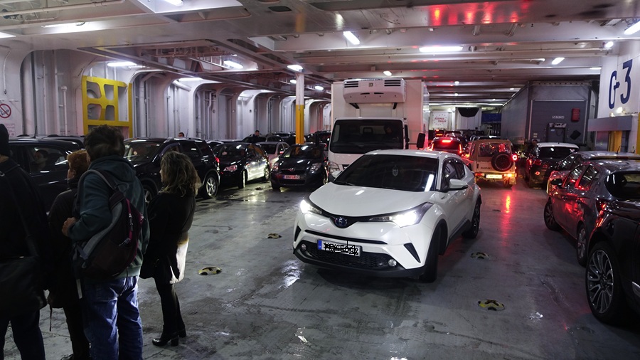 Το κατάφορτο γκαράζ του Andros Queen το μεσημέρι του Σάββατου.
