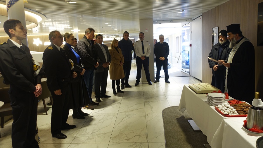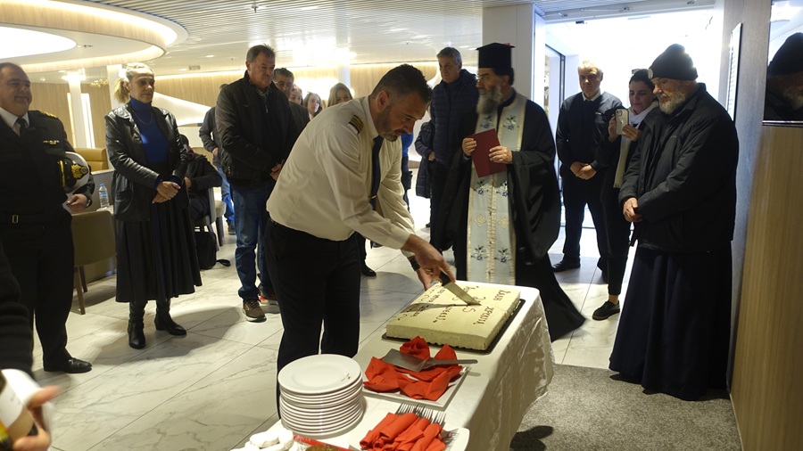Την πίτα έκοψε ο πλοίαρχος του πλοίου Θανάσης Χαλάς.