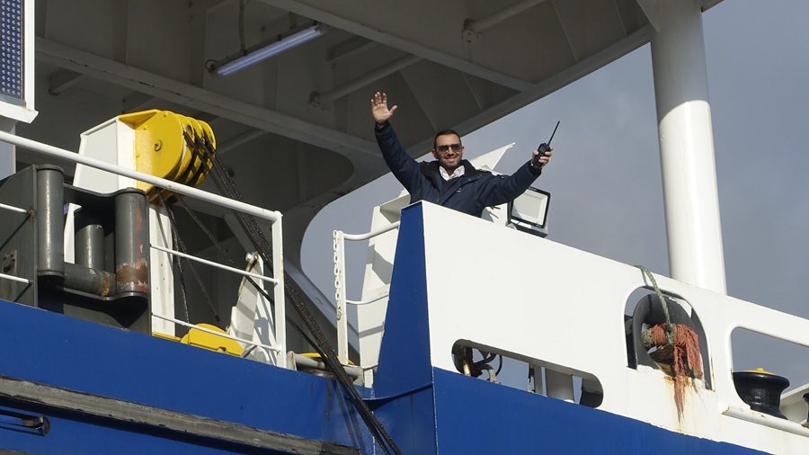 Από ψηλά στους κάβους ο υποπλοίαρχος Σταύρος Στεφάνου, από την Άρνη, έστελνε χαιρετισμούς κι ευχές.