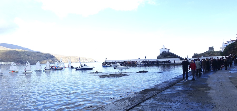Ήταν η μέρα εκπληκτική. Από τις υπέροχες Αλκυονίδες του Ιανουαρίου. Ο κόσμος αρκετός. Οι παρουσίες ομαδικές και ατομικές όπως αναμένονταν. Ήταν παρούσες και οι τοπικές αρχές: δήμαρχος και έπαρχος. Το σκηνικό που δημιουργήθηκε στο τέλος εντυπωσιακό με τα σκάφη, τα καπνογόνα στη θάλασσα, τον ήλιο που δημιουργούσε φωτοσκιές στη δοξαστική μέρα. Θεοφάνεια 2025 στην παραλία της Αγίας Θαλασσινής. Στάσιμο πρώτο: Θεοφάνεια στη Χώρα της Άνδρου.