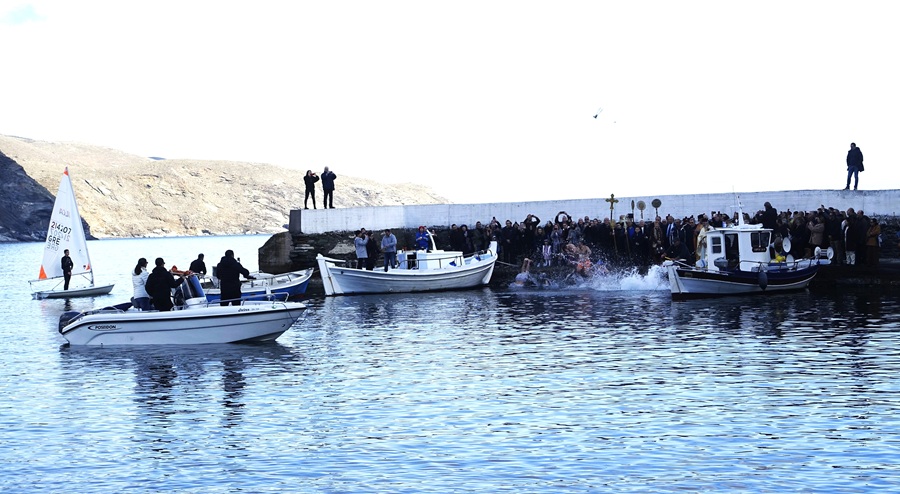 Και η σεμνή, ωραία, θεαματική και παραδοσιακή τελετή ολοκληρώθηκε κάπου εδώ αφήνοντας μας με εικόνες όμορφες και ζωηρές από την ρίψη του σταυρού στην Άνδρο. Και του χρόνου νάμαστε καλά...