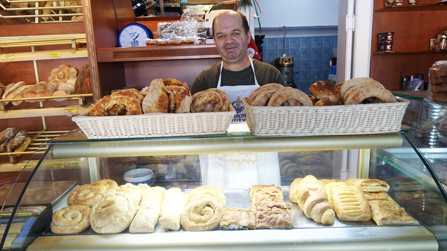 Πήγαμε να αγοράσουμε 2-3 για το σπίτι. Για τον Γιάννη είχαμε γράψει και παλαιότερα. Το θυμήθηκε και μάς έπιασε την κουβέντα. Μάς ευχαρίστησε για την παλιά αναφορά μας. Μάς είπε για την κόρη του που σπουδάζει και γι' αυτόν που δίνει την μάχη της καθημερινότητας σε ένα άδειο χειμερινό Μπατσί. Χαμογελαστός, οικείος, προσηνής, φιλικός. Τον ακούγαμε και χαιρόμαστε που υπάρχει με το πλατύ χαμόγελο και την καλοσύνη του. Αλλά και με τα εξαιρετικής ποιότητας και μεγάλης ποικιλίας ψωμιά του και τα άλλα αρτοσκευάσματα δίνει καθημερινά τον τόνο στο Μπατσί. Ο φούρνος είναι καθημερινή αναφορά όλων. Το ψωμί είναι - από αρχαιοτάτων χρόνων - καθημερινή διατροφή όλων. Οι φούρνοι και οι φουρνάρηδες είναι ο ακρογωνιαίος λίθος της καθημερινότητας μας. Όταν λοιπόν αυτή καθημερινότητα συνδυάζεται με το ζεστό και πλατύ χαμόγελο του Γιάννη τότε αποκτά ένα ζεστό σχήμα και η ζωή μας. Και το ψωμί όπως και το τυροκούλουρο αποκτούν κι αυτά μια χαμογελαστή γεύση...