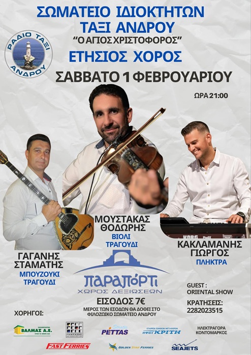 ΠΙΤΕΣ ΣΤΗΝ ΑΝΔΡΟ: Φόλκς Ανγκλε, Σωματείο Ιδιοκτητών Ταξί, Σύλλογος Στραπουργιών-Υψηλού-Λαμύρων