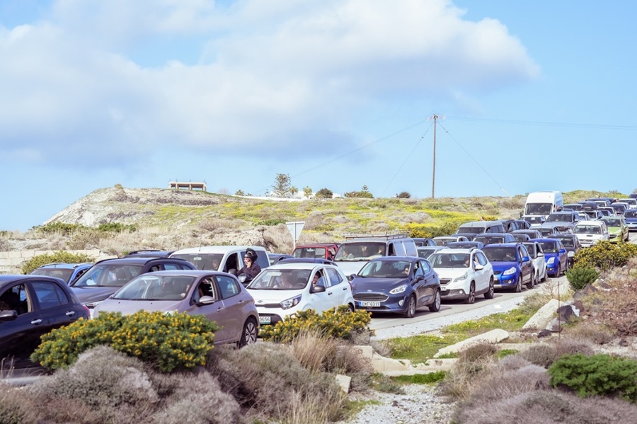 ΣΑΝΤΟΡΙΝΗ: Μεγάλη έξοδος και μποτιλιάρισμα στο δρόμο για το λιμάνι!!!