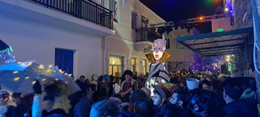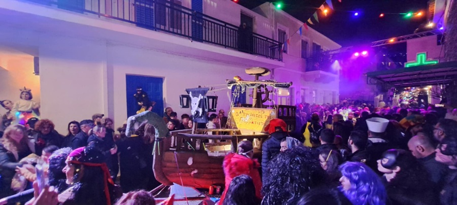 Ο βασιλιάς Καρνάβαλος στο νυχτερινό καρναβάλι του Όρμου Κορθίου.