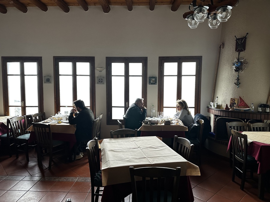 Πριν περάσουν 5 λεπτά έφτασε η επόμενη παρέα. Μέσα σε ένα τέταρτο έφτασαν 4-5 παρέες. Δύο-τριών ατόμων. Όλοι ντόπιοι. Από αυτούς που μένουν και τον χειμώνα, αλλά και από αυτούς που πηγαινοέρχονται αδιάκοπα τον χειμώνα. Από τουρίστες, ας το ξεχάσουμε...
