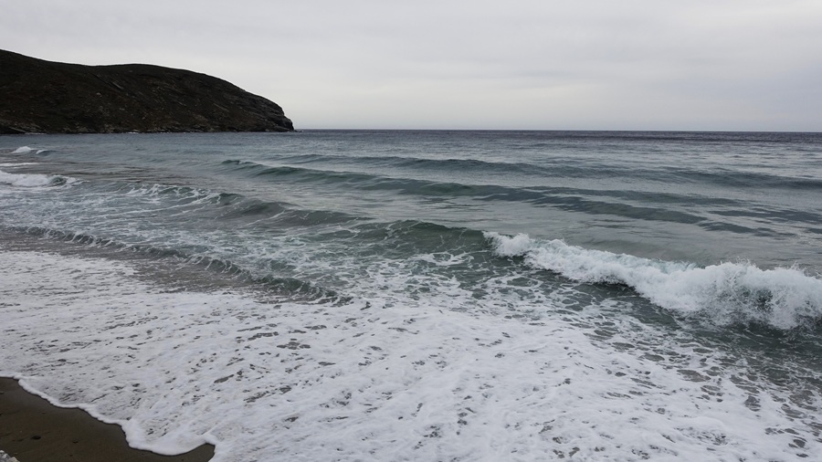 Κατηφορίσαμε στα Γυάλια ή Γιάλια. Όπως και να τα γράψει κανείς δεν αλλάζει τίποτα από την χειμερινή όψη της ερημιάς. Μόνο το καλοκαίρι υπάρχουν άνθρωποι στο χωριό να διαφωνούν για το πως γράφεται το όνομα της παραλίας. Τον χειμώνα όπως και να το γράψεις δεν αλλάζει τίποτα στην ερημικότητα του χωριού και του τοπίου. Αυτοί οι καλοκαιρινοί, που νοσταλγούν μια καλοκαιρινή Άνδρο χωρίς επισκέπτες, αδιαφορούν πλήρως για μια άδεια Άνδρο και με ελάχιστους κατοίκους τον χειμώνα. Νομίζουν πως ζει ένας τόπος χωρίς νέους και χωρίς κατοίκους τον χειμώνα. Τι να πει κανείς;