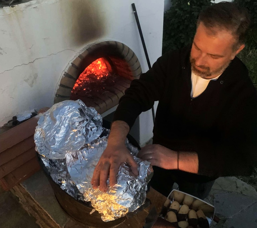 Πιο παραδοσιακά τα πράγματα στο Κόρθι. Ετοιμάζουν ξυλόφουρνο για τον παραδοσιακό λαμπριάτη...