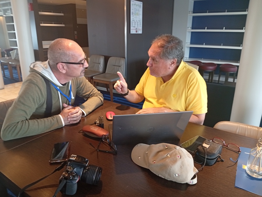 Και κάπου εκεί ήρθε η ώρα να γνωρίσουμε τον καθηγητή Εμανουέλε από την Σικελία. Ελληνιστής! Και ποιητής! Στην Σικελία συναντά την Ελλάδα τριγύρω του. Κι ήρθε στην Ελλάδα με το πρόγραμμα της Ραφήνας να βρει την Ελλάδα, που αγαπά και της οποίας τη γλώσσα μιλά και διδάσκει. Ατυχώς το πλοίο έφτανε στο λιμάνι και δεν είχαμε χρόνο για περισσότερα πέρα από μια τελευταία αναμνηστική φωτογραφία μαζί του.