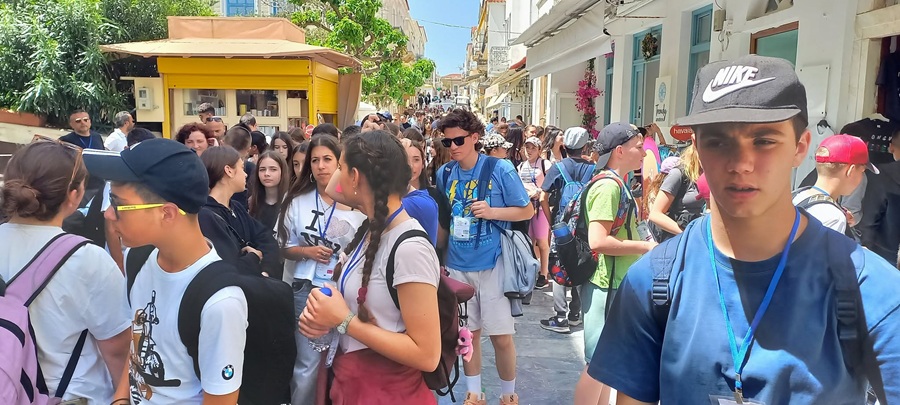 Η ΕΙΔΗΣΗ: 56 μαθητές και καθηγητές από την Ραφήνα και 54 μαθητές και καθηγητές από την Ευρώπη επισκέφθηκαν την Άνδρο την Τρίτη 6 Μαΐου 2025 σε ένα μικτό πρόγραμμα από μαθητές και καθηγητές που συμμετείχαν στο ευρωπαϊκό πρόγραμμα Erasmus για μαθητές και στο πρόγραμμα της αδελφοποίησης της Ραφήνας με το Παλέρμο της Σικελίας. Την Άνδρο επισκέφθηκαν με το πρόγραμμα Erasmus για μαθητές 10 παιδιά από τη Νάπολη, 26 από την Τουρκία, 2 από την Γερμανία, 5 από την Λετονία, και 16 παιδιά με το πρόγραμμα αδελφοποίησης με την Ραφήνα από το Παλέρμο. Τα συνόδευαν 11 καθηγητές τους.