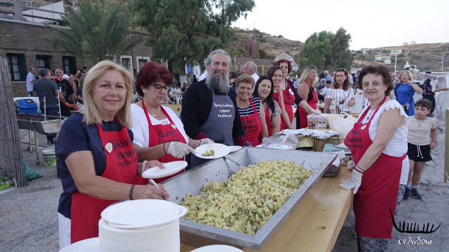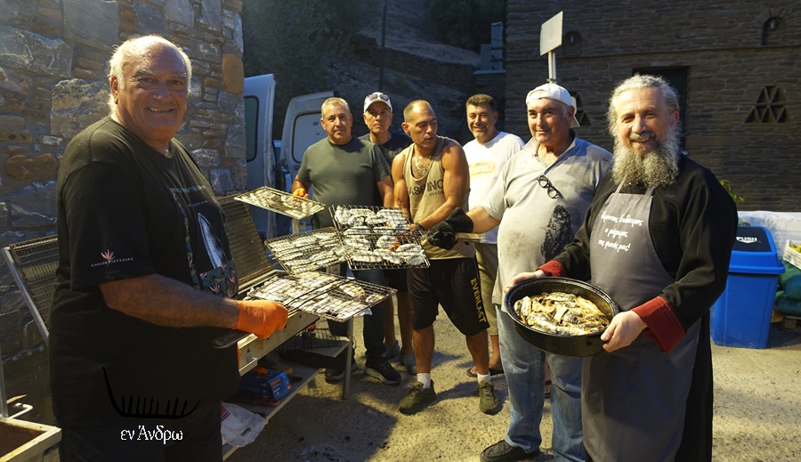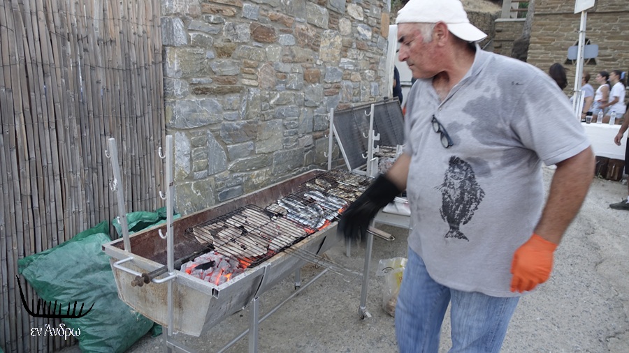 Άρα η ψαράδικη βραδιά ήταν μια καλή ευκαιρία για τους ανδριώτες να αφήσουν στην άκρη τα λουκάνικα και τη λούζα και να εστιάσουν στη σαρδέλα και στον γαύρο. Και οι ανδριώτες ανταποκρίθηκαν μαζικά στο κάλεσμα. Οι σαρδέλες στα κάρβουνα, λοιπόν, ήταν η τέλεια αναφορά του εξωτικού γεγονότος για να έχουμε το αρχικό μενού της επιτυχίας της βραδιάς.. Προσθέστε τώρα στο μενού την δραστήρια εθελοντική παρουσία (α) του Αλιευτικού Συλλόγου Άνδρου, (β) του Συλλόγου Γυναικών Κορθίου, (γ) του Ναυτικού Ομίλου Κορθίου και (δ) του πανταχού παρόντος πατέρα Αετίου της Μονής Παναχράντου και θα έχετε την πλήρη συνταγή της μεγάλης επιτυχίας της βραδιάς.