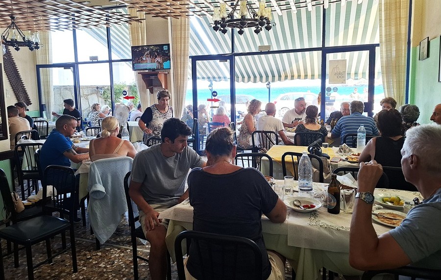 Σήμερα όμως λόγω κίνησης ήταν μέρα για φαγητό πακέτο για την βεράντα. Ευτυχώς. Γιατί το Αρχιπέλαγος του Βαγγέλη ήταν κατάμεστο μέσα κι έξω. Πρωτόκολλο. Κανένα τραπέζι άδειο. Και μόνο μια-δυο καρέκλες κενές σε κατειλημμένα τραπέζια. Όλοι πήραν τους δρόμους ανήμερα της Παναγίας. Επιπλέον το Αρχιπέλαγος με ωραίο μαγειρευτό φαγητό του και καλές τιμές έχει ήδη "μπαρκάρει" και ταξιδεύει μακριά. Έχει φτράσει στον Κάτω Άγιο Πέτρο και ακόμα πιο πέρα. Πρόσφατα ρωτούσε ο καλοφαγάς Δημήτρης - καλοκαιρινός κάτοικος Κατωαγιοπέτρου: "λένε για ένα εστιατόριο με καλό μαγειρευτά στο Νειμποριοί!..." Λένε... Αλλά λέγε-λέγε το μάθαν όλοι και σήμερα Δεκαπενταύγουστο ο Βαγγέλης "ταξίδεψε"... πρωτόκολλο! Αυτά έχει η φήμη: ταξιδεύει γρήγορα και φέρνει πρωτόκολλα...