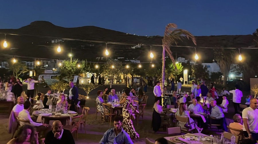 Το μενού της δεξίωσης ετοιμάστηκε επι «τόπου», υπό την επίβλεψη κορυφαίων σεφ από τα αθηναϊκά μαγαζιά του Πέτρου Απαλάκη, αφήνοντας τις καλύτερες εντυπώσεις. Η βραδιά στην Άνδρο ήταν γεμάτη έντονα συναισθήματα, κοσμικότητα, ρομαντισμό και ατμόσφαιρα rock ‘n’ roll αφήνοντας σε όλους αξέχαστες αναμνήσεις.