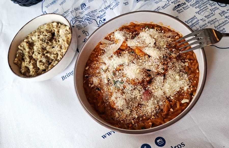 Ταβέρνα-εστιατόριο ο "Σταμάτης". Εφέτος είχε άνοδο της τάξης 20%-25%! Ο λόγος; Σταθερή παρουσία, σταθερή ποιότητα, σταθερές τιμές. Στη φωτογραφία το κλασικό κριθαρότο με γαρίδες και μελιτζανοπουρές. Με λίγα χρήματα μπορεί κάποιος να φάει και ποιοτικά και καλά. Η ποιότητα σε συνδυασμό με τις τιμές κερδίζουν. Και σημειώστε: ανοικτός χειμώνα-καλοκαίρι...