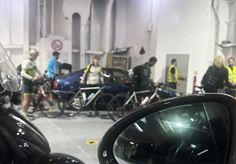 Η Άνδρος μπορεί! Ένα μεγάλο γκρουπ με ξένους ποδηλάτες έφτασε στο νησί το Σάββατο το πρωί με ένα κατάμεστο πλοίο. Σας στέλνω σχετική φωτογραφία από το γκαράζ του πλοίου.