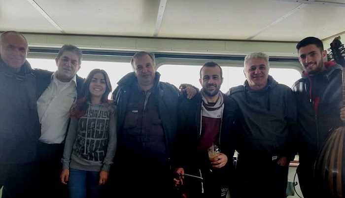 Ο μάστρο-Γιάννης Ζούρας μαζί με τα παιδιά που είπαν τα κάλαντα στο πρώτο πλοίο στην Φολέγανδρο την πρωτοχρονιά του 2020...
