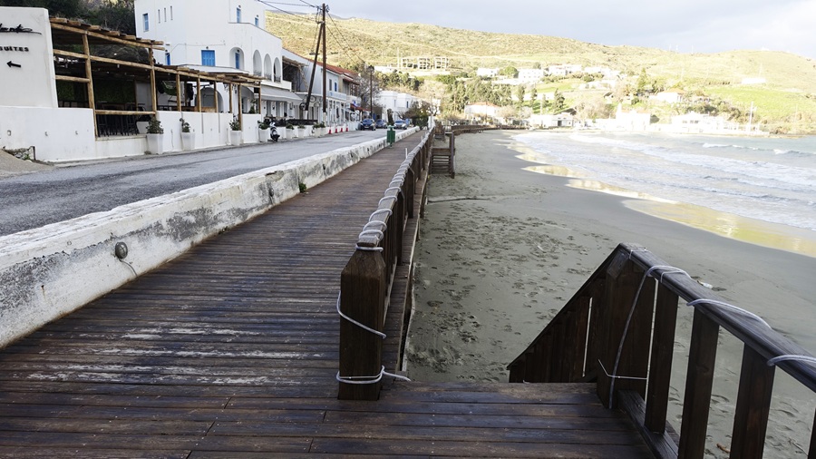 Νειμποριός. Η απόλυτη ερημιά. Μόνο η πεζογέφυρα, του απόντος οραματιστή Δημήτρη Γιαννίση. Μουσκεμένη από την βροχή και το κύμα δίνει την ευκαιρία για μια βόλτα με τα πόδια μέχρι το έρημο λιμάνι...