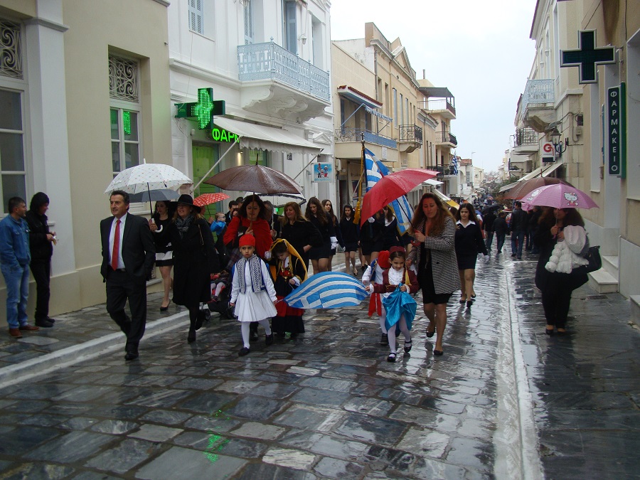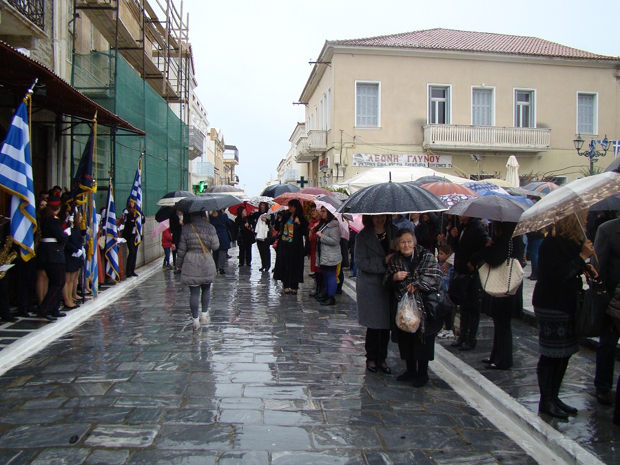 Ο καιρός δεν βοήθησε. Όμως η κοινωνία που κάτι περίμενε έστω με τις ομπρέλες ήταν εκεί. Και τα παιδιά ήταν εκεί. Και η μπάντα της φιλαρμονικής του Μουσικού Συλλόγου ήταν εκεί. Η τελετή γρήγορη, αγχωτική, μέσα στην βροχή που λεπτό το λεπτό δυνάμωνε.