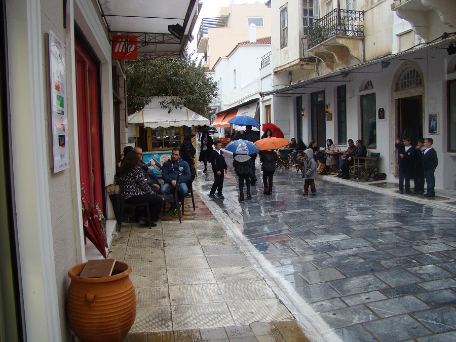 Και μετά την τελετή, παρά την βροχή, η καθιερωμένη βόλτα. Λίγο βιαστική. Λίγο μουσκεμένη. Αλλά πάλι να θυμίζει αργία. Και τα παιδιά να παίζουν. Έστω με ομπρέλες...