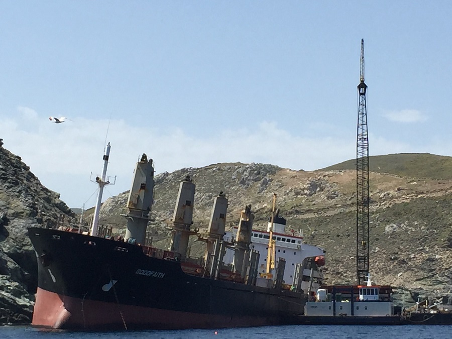 Γερανοί και άλλα πλωτά γύρω από το προσαραγμένο καράβι