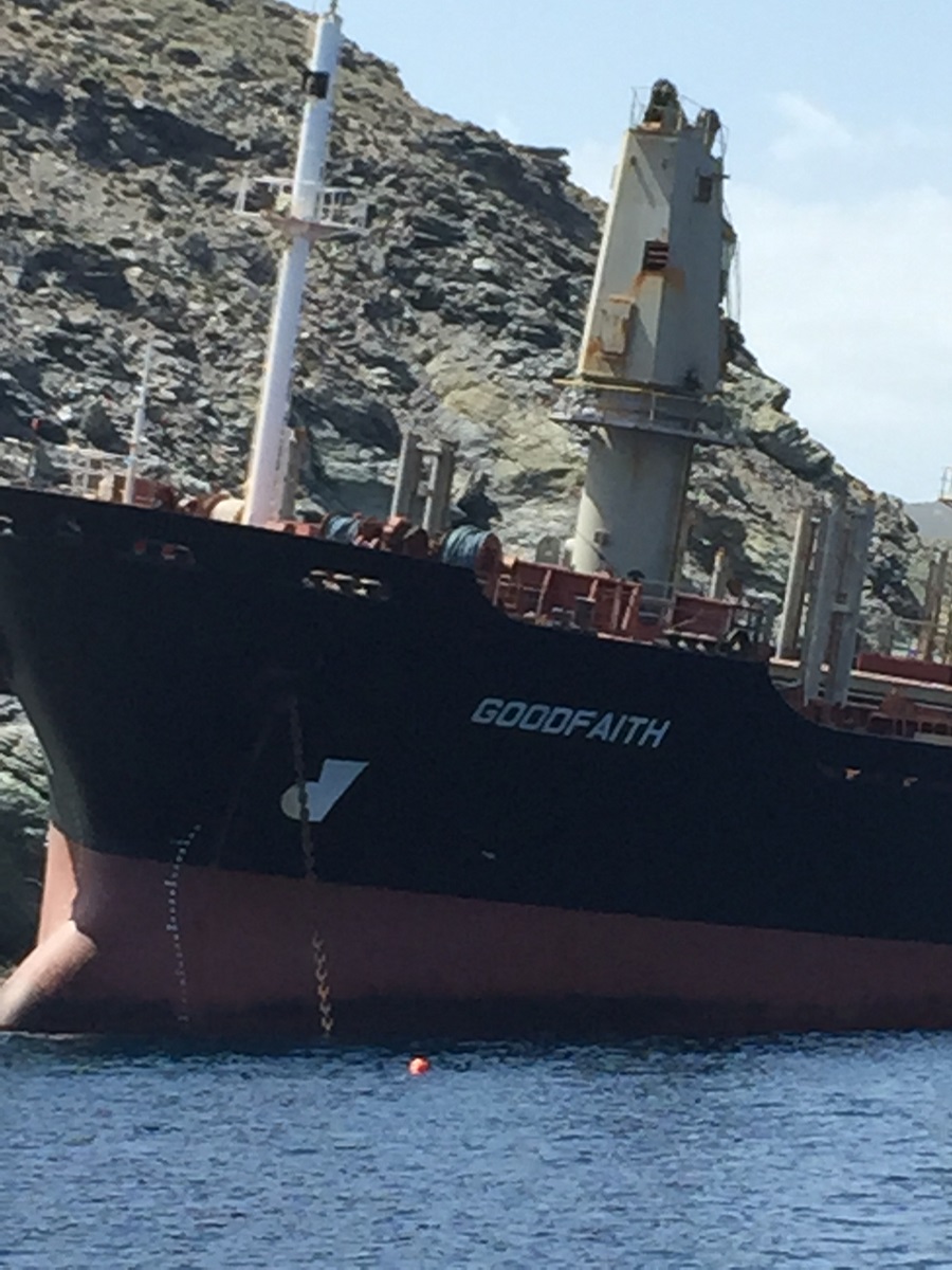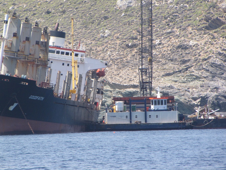 Ήδη όμως από χτες φίλοι μας από την Μονή Παναχράντου βρέθηκαν στα Πέζα (επισκέφθηκαν τους σπάνιους υδροβιότοπους της Άνδρου) και μας έστειλαν μια σειρά μοναδικών φωτογραφίων από το τεράστιο εργοτάξιο που έχει στηθεί στα Πέζα για γύρω από το καράβι που προσάραξε τον χειμώνα. Δημοσιεύουμε λοιπόν μαζί με τις αναδηοσιεύσεις μας και το αποκλειστικό αυτό φωτορεπορτάζ από μια επιχείρηση σπάνια στα ελληνικά νερά.