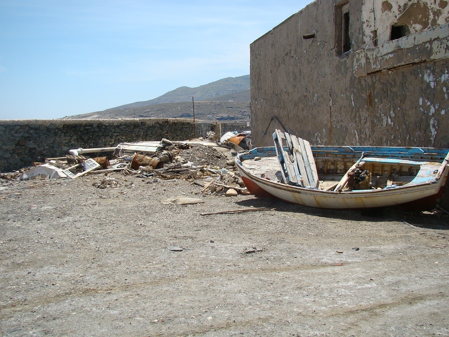 Στο πίσω μέρος των παλιών κτηρίων του λιμανιού. Μπάζα, μια σάπια βάρκα, πεταμένα καδρόνια! Και ευτυχώς που έγινε ένας πρώτος καθαρισμός τις προάλλες!!!
