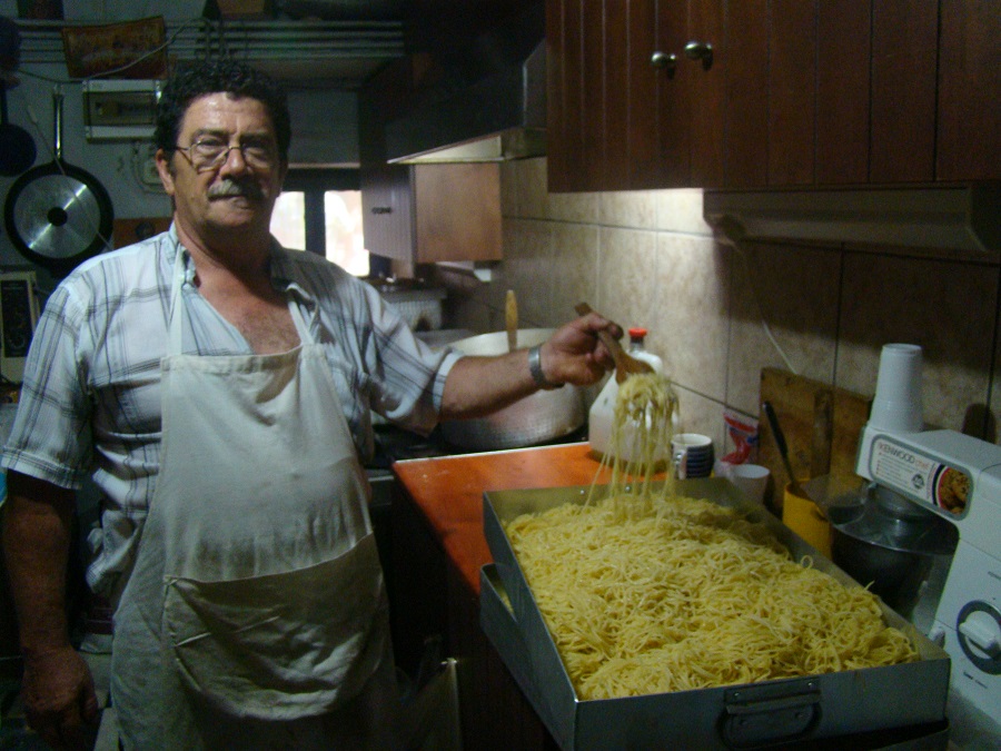 Και ο "αφανής μάγειρας" της πλούσιας μακαρονάδας του γεύματος. Λόγω της γιορτής μαγείρεψε ο ακάματος και μερακλής Γιάννης Μωράκης.