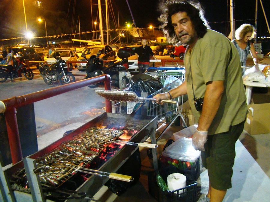 Ο Αλέξανδρος, ψήνοντας κιλά σαρδέλες στα κάρβουνα. Ερασιτέχνης ψαράς στη Ραφήνα, σπίτι στο Κάτω Υψηλού (!) και αναγνώστης του ..."εν Άνδρω"!!