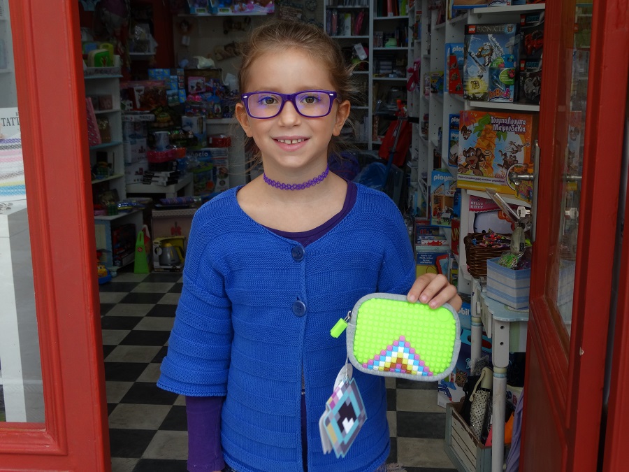 Το επόμενο πρωί η Κοραλία χαρούμενη σε καλημερίζει ποζάροντας με το πορτοφολάκι της..