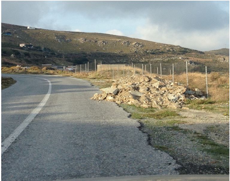 Αφορμή για τα παραπάνω μου έδωσε, η εικόνα που αντίκρισα προχθές οδηγώντας από Αποίκια προς Βουρκωτή. Τώρα πλέον τα μπάζα τα πετάμε και πάνω στο δρόμο!  Στη περιοχή Φλέα «κάποιοι» έριξαν  τα μπάζα τους εκεί όπου τους βόλευε. Μην τα πηγαίνουν και μακριά και καταναλώνουν και καύσιμα.  Τι κι αν είναι μπροστά σε περιφραγμένη ιδιοκτησία,  τι κι αν καταλαμβάνουν ΚΑΙ το οδόστρωμα, τι κι αν υπάρχει κίνδυνος ατυχήματος. Αδιαφορία! Τη δουλειά μας την κάναμε!
