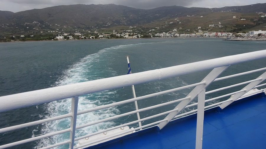 Το πλοίο φεύγει παίρνοντας μαζί του τους τελευταίους βιαστικούς του Σαββατοκύριακου (φωτο: Ηλίας Λάμπου)